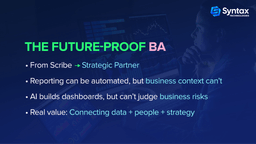 So the next time someone says, “The BA role is dead,” remember: it’s not a funeral. It’s a transformation. And those who adapt—by learning data skills, staying curious, and thinking strategically—will only become more valuable.